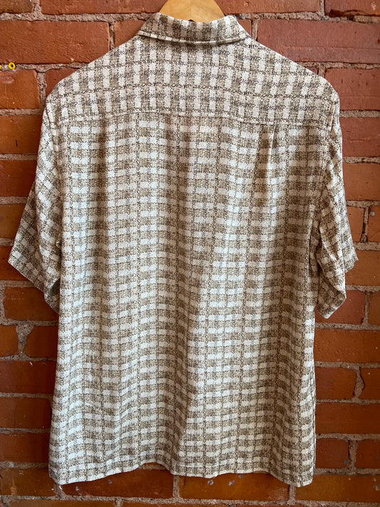 Beige Claiborne Silk Short-Sleeve Button-Up