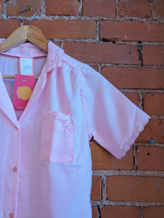 1970s Baby Pink Short Sleeve Blouse With Embroidered Details