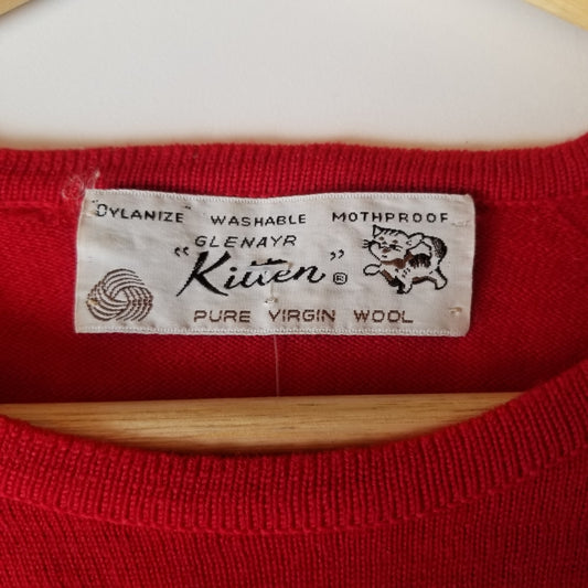 1960s Glenayr Kitten Dark Red 100% Pure Virgin Wool Sweater