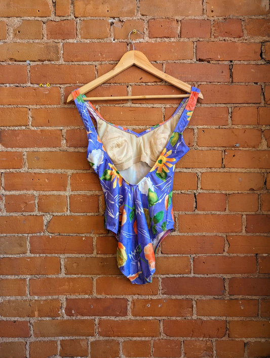 1990s Via Brazil Purple Floral One Piece Swimsuit
