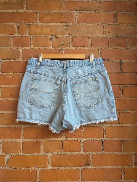 1990s Zig Zag Light Wash Denim Cutoff Shorts With Bleach Details