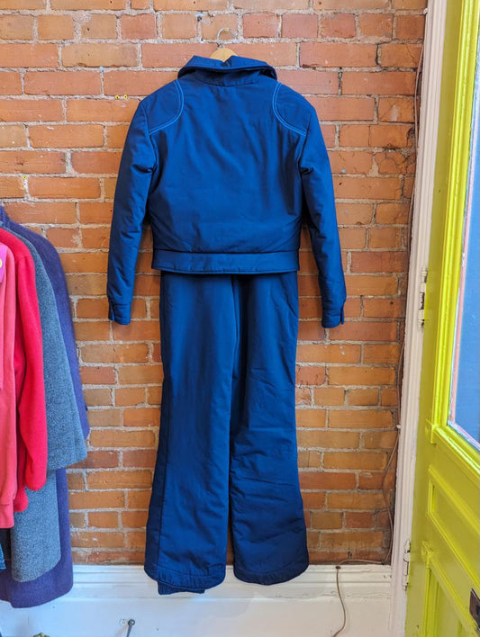 1970s Ditrani Designs Navy Blue Ski Jacket and Overall Snow Pants Set