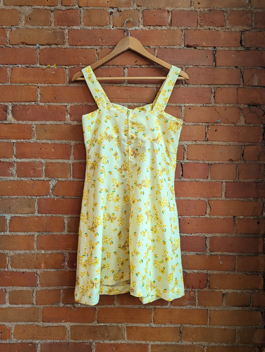 1970s Pale Yellow Butterfly Print Mini Dress