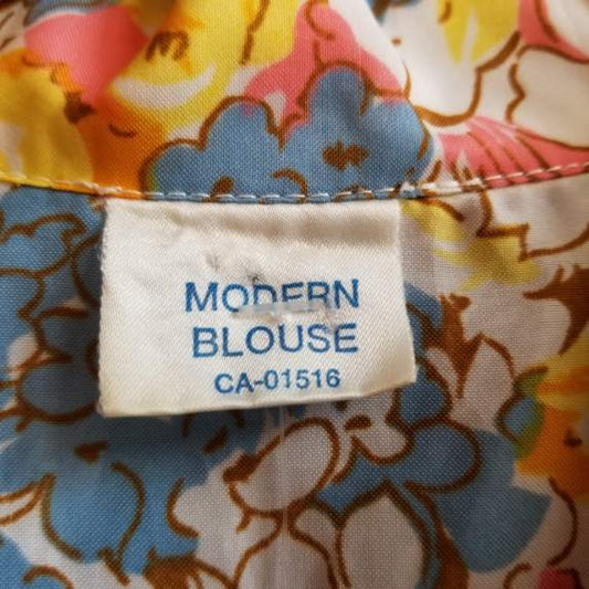 1970s Pastel Floral Dagger Collar Blouse