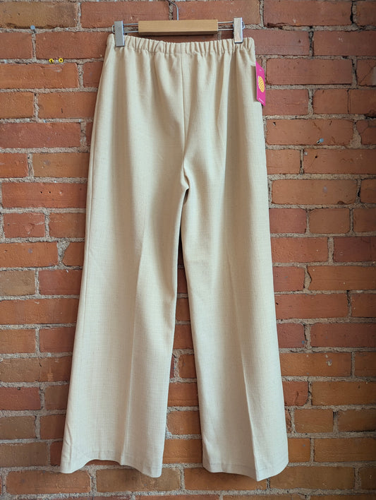 1970s Sweetheart Sportswear Tan Linen-Look High-Rise, Wide Leg Pants