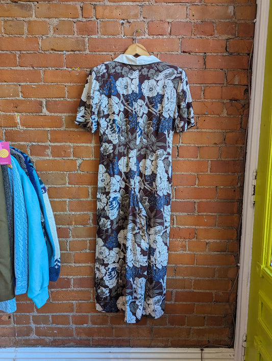 1970s The French Fact Brown Floral Jumpsuit