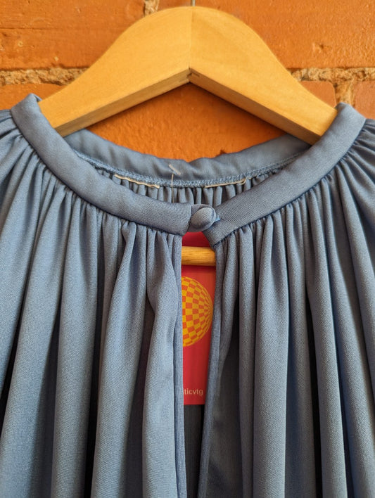 1970s Steel Blue Maxi Length Lounge Dress