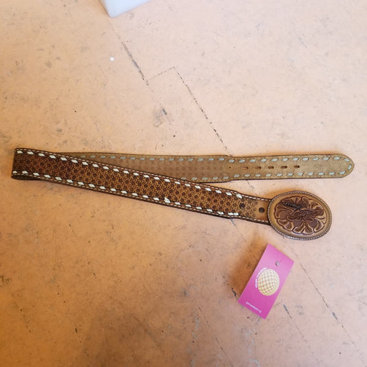 1970s Wild Rose Hand Tooled Brown Leather Belt