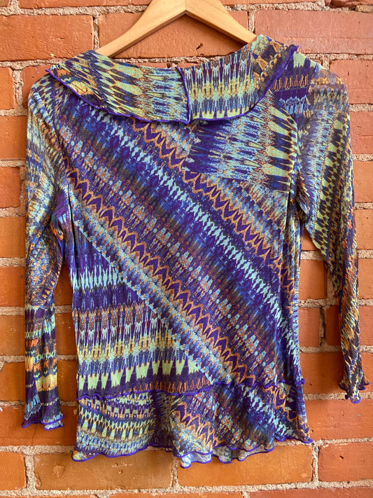 1970s NWT York Uniforms Navy Blue Cardigan With Green and Purple Striped Accents