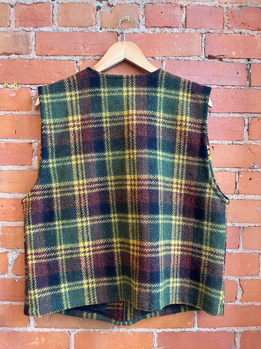 1 by Eaton Cropped Red, Green and Blue Plaid Wool Sweater
