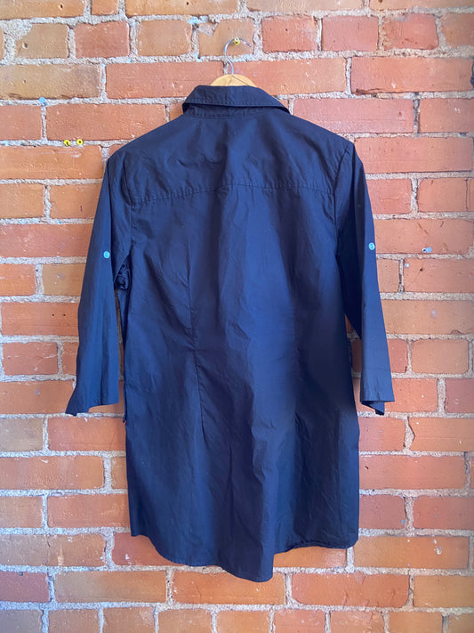 Y2K Tres You Black Half-Sleeve Longline Blouse