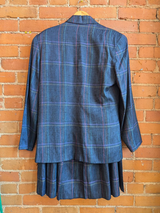 1980s Paradox Collection Blue Plaid Blazer and Pleated Skirt Set