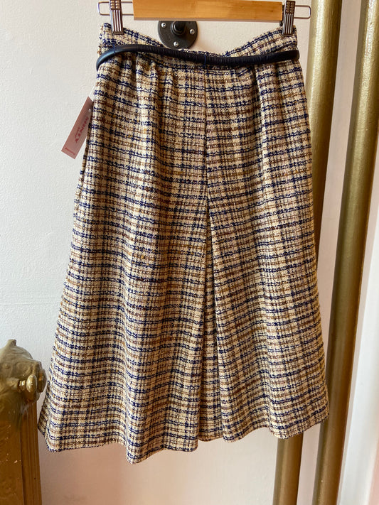 Sold outBeige & Navy Wool Plaid Belted Skirt