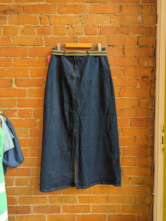 1990s Contrast Jeans Denim Maxi Skirt