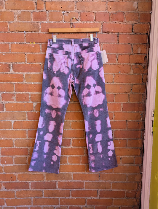 1990s Jane Doe Jeans Mid-Rise, Kick Flare Corduroy Pants With Pink and Purple Bleach Detailing