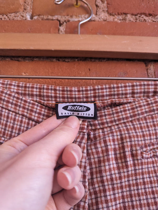 1990s Buffalo David Bitton Straight Leg Orange and Brown Plaid Pants