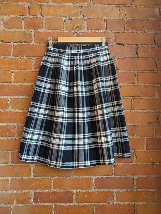 1990s Black and White Pleated Plaid Skirt