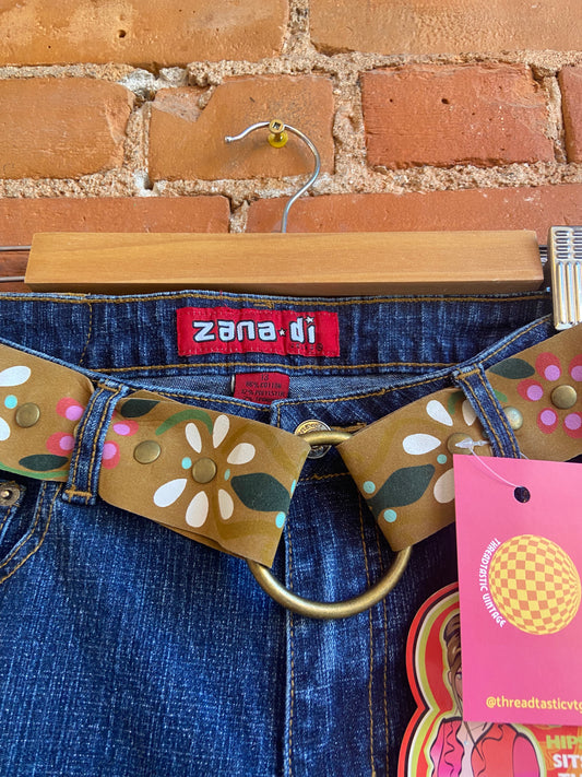 1990s/Y2K Zana Di Dark Wash Flare Jeans With Groovy Faux Suede Belt