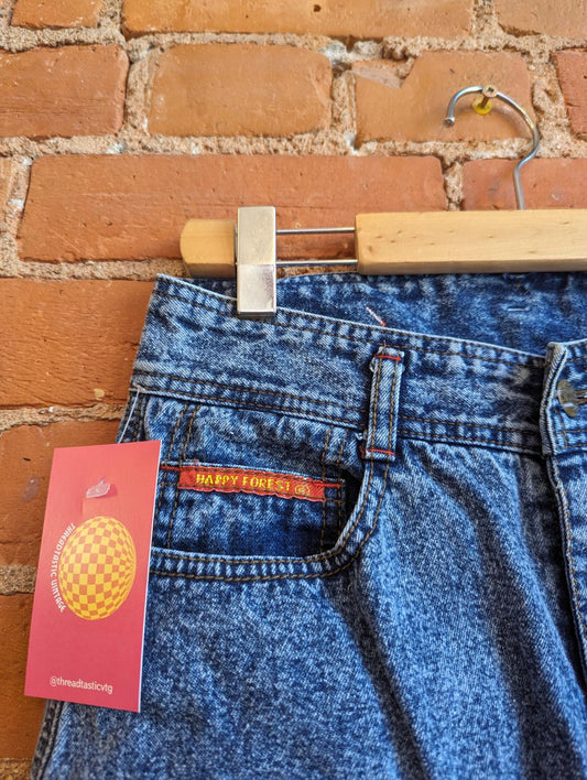 1980s Happy Forest Acid Wash Denim Skirt