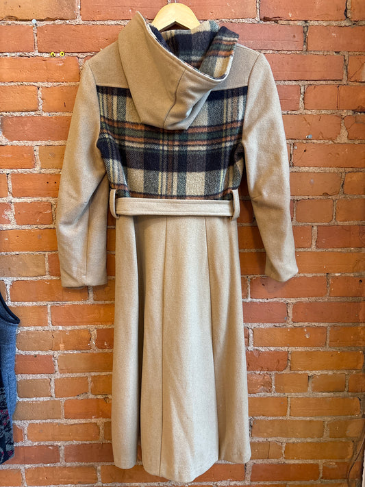 70’s Hooded Wool Jacket with Decorative Plaid Detailing