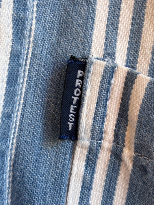 Protest Blue Cotton Denim Stripe Button Down Shirt