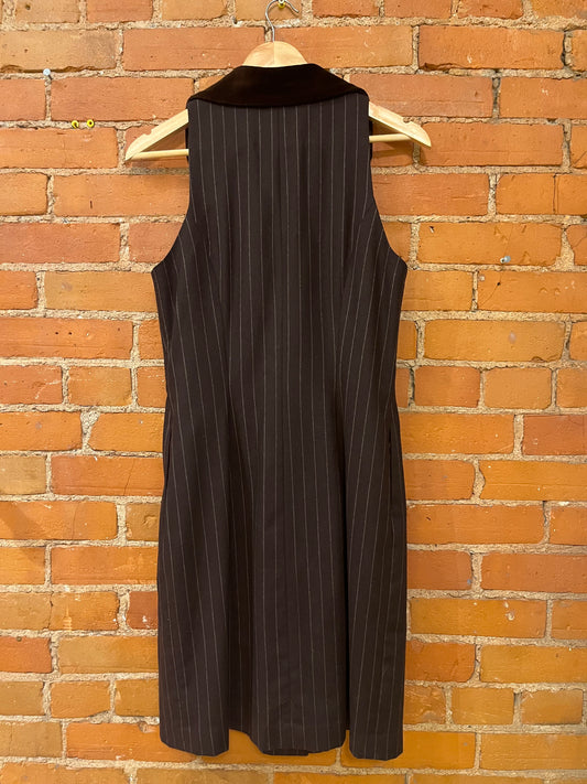 Ralph Lauren 1990s Brown Pinstripe Wool Dress