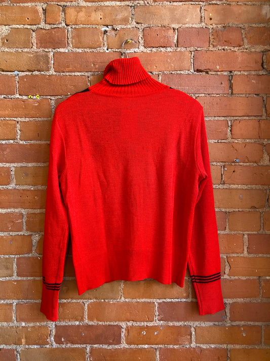 1970s Petit Franke Red, Black and White Diagonal Stripe Turtleneck Sweater