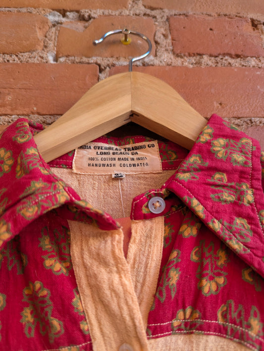 1970s India Overseas Trading Co. Peach Gauze Shirt With Floral Print Accents