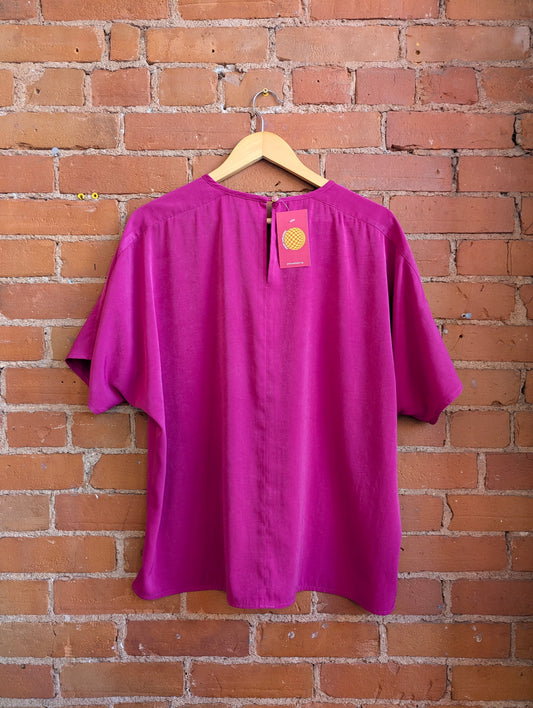1980s Lilley Silk Fuchsia Pink Short Sleeve Blouse