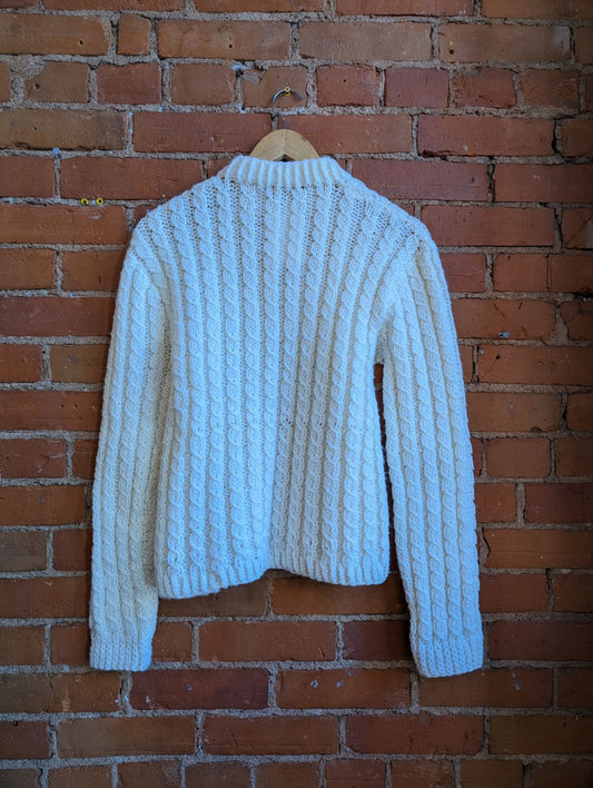 1980s Hand-Knit Cream Cable Knit Sweater