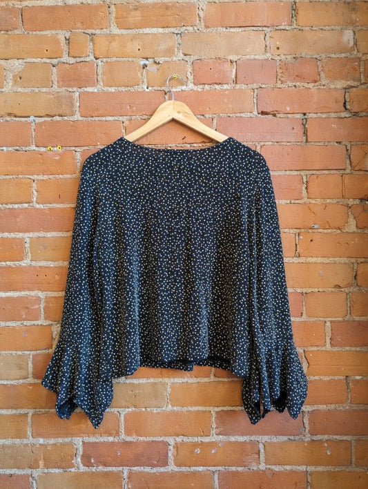 1990s Dino Black Glittery Top With Flare Sleeves