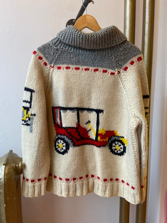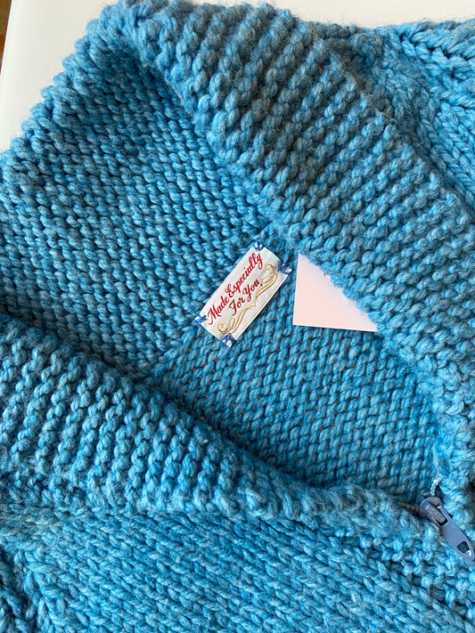 Sky Blue Airplane Mary Maxim Zip Sweater