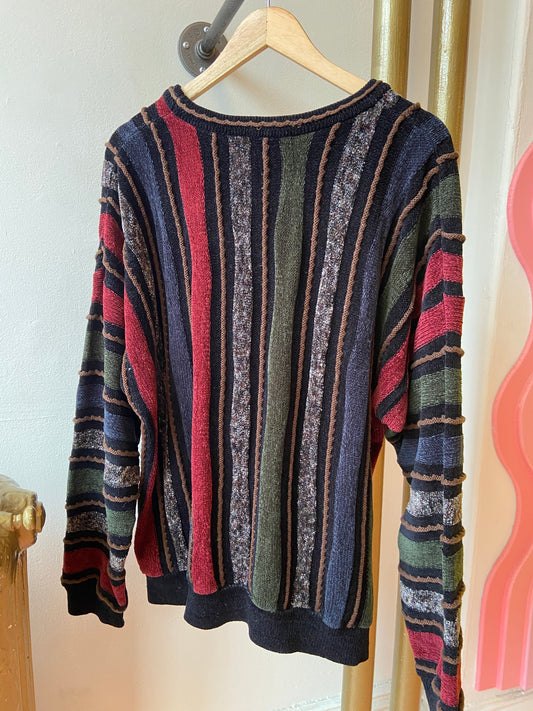 1970s NWT York Uniforms Navy Blue Cardigan With Green and Purple Striped Accents