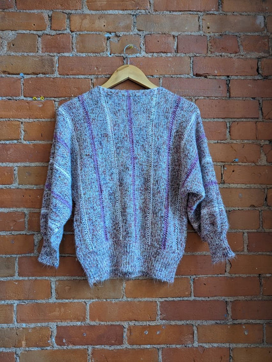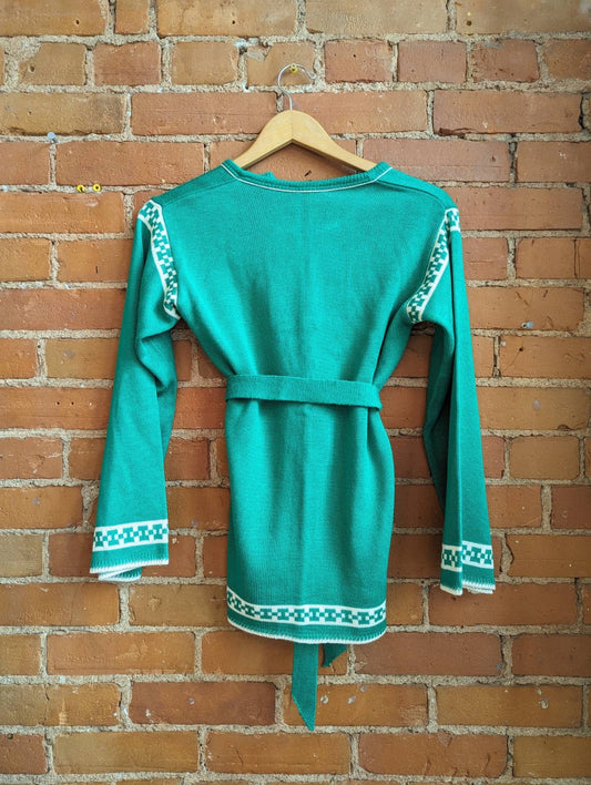 1970s NWT York Uniforms Navy Blue Cardigan With Green and Purple Striped Accents