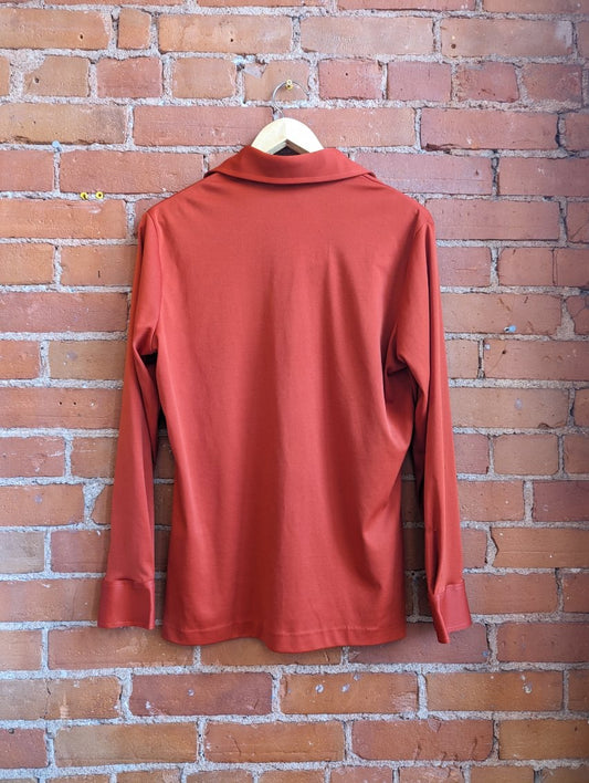 1970s Koret of California Burnt Orange Dagger Collar Top