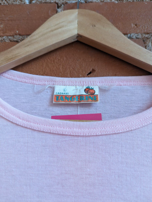 1970s Tangerine Baby Pink Single Stitch Ringer Tee
