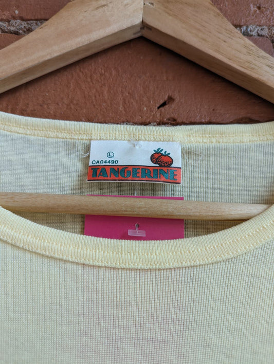1970s Tangerine Single Stitch Pale Yellow Ringer Tee