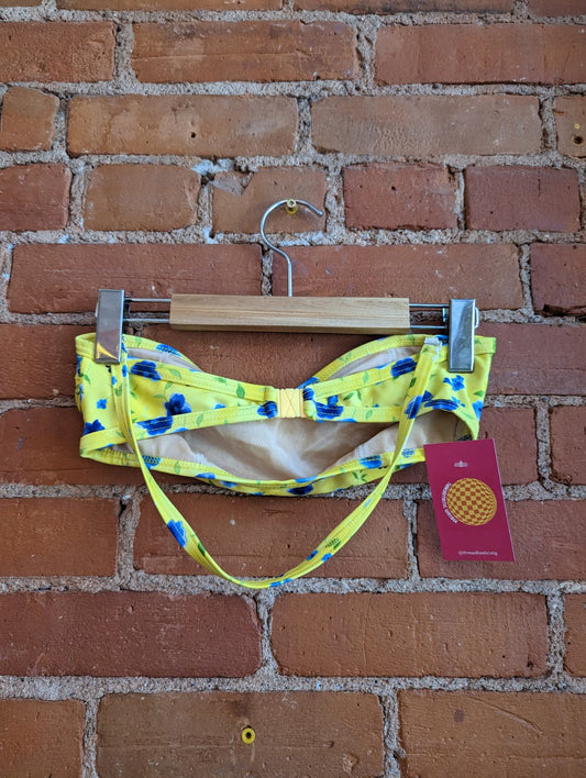 1990s Krista Yellow Floral Print Bandeau Bikini Top