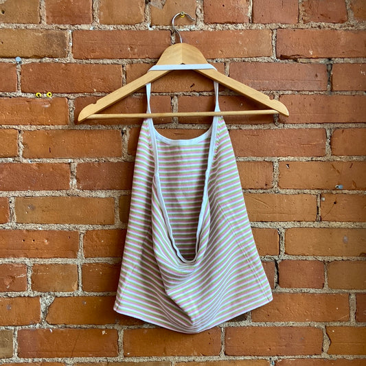 1990s Jones and Co Green, Pink and White Striped Halter Top