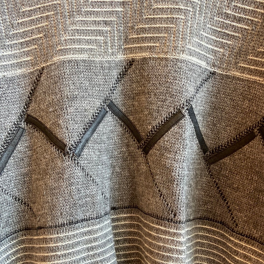 1990s Grey BOSA Grandpa Sweater With Leather Strips