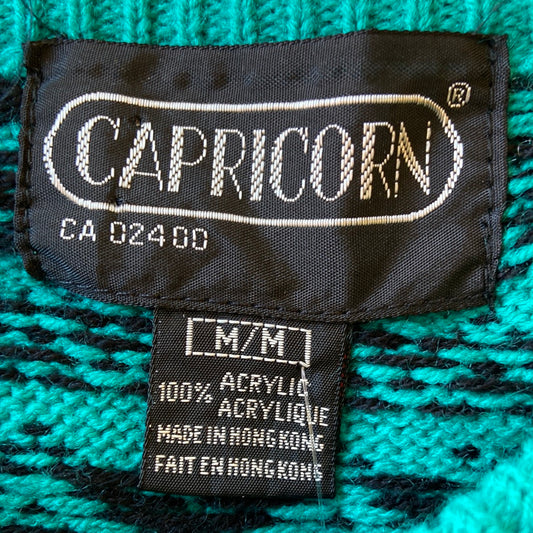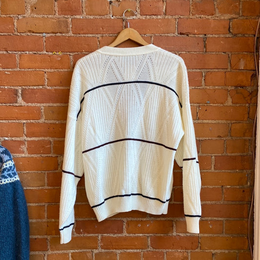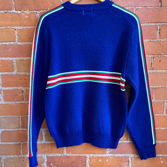 1970s NWT York Uniforms Navy Blue Cardigan With Green and Purple Striped Accents