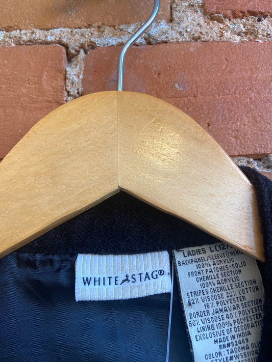1970s NWT York Uniforms Navy Blue Cardigan With Green and Purple Striped Accents