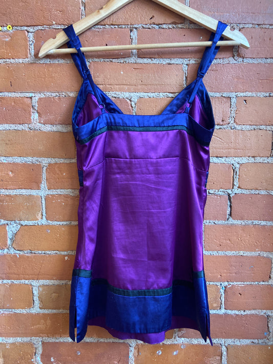 1990s Linda Sheer Pink, Purple and Yellow Crop Top