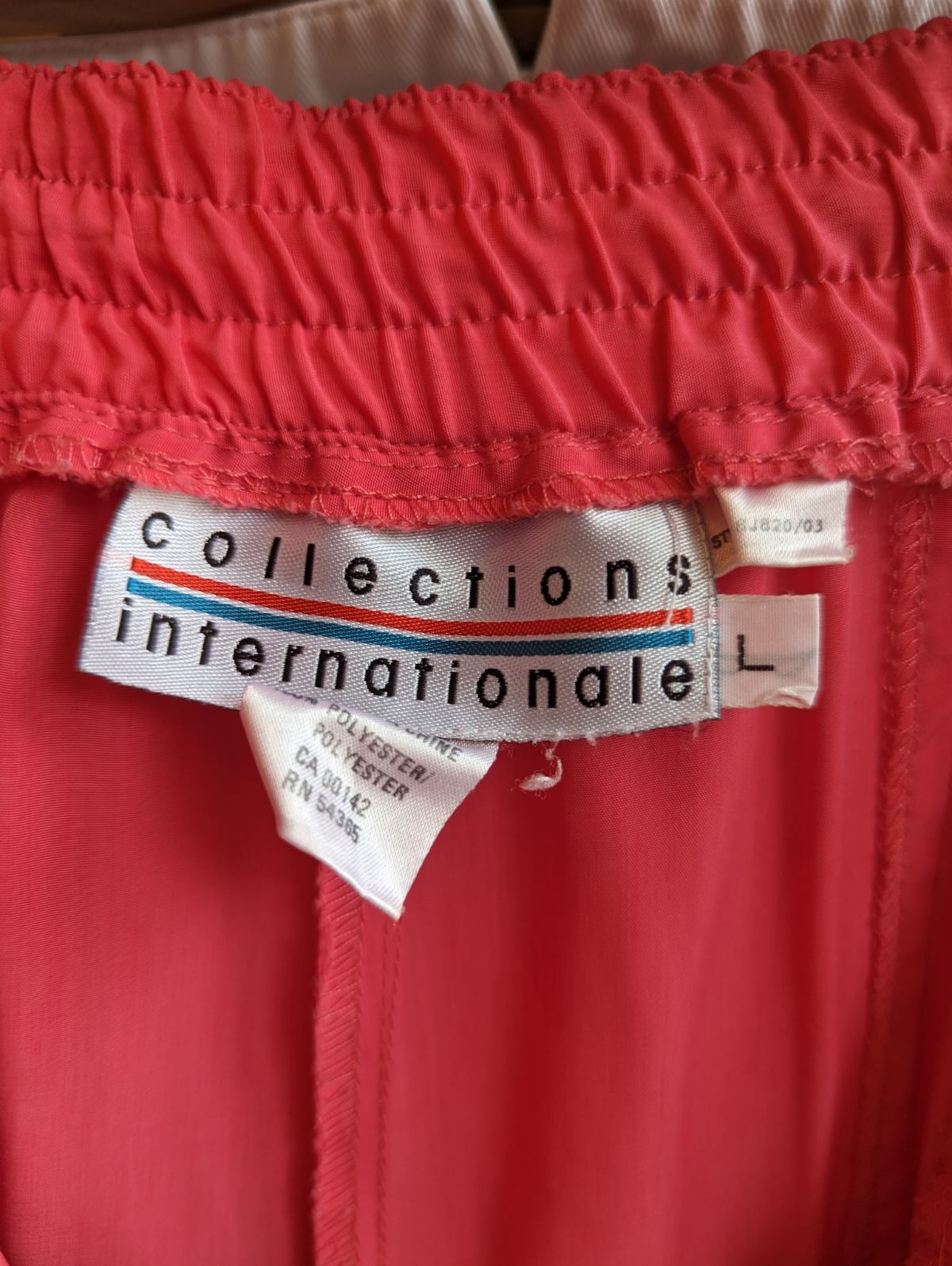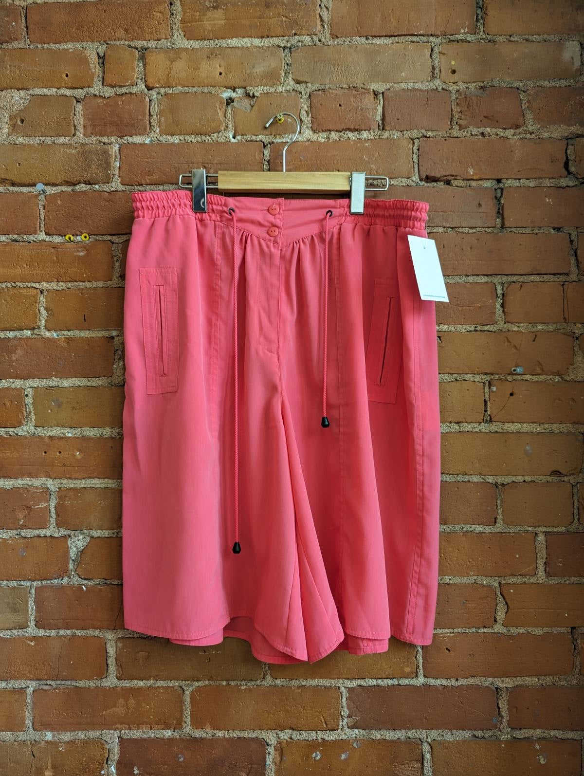 These 1980s Collections Internationale shorts are made out of a pink 100% polyester fabric and have a high rise, longline fit. They also have a two pockets on the front, and an elastic waist with buttons and a drawstring.