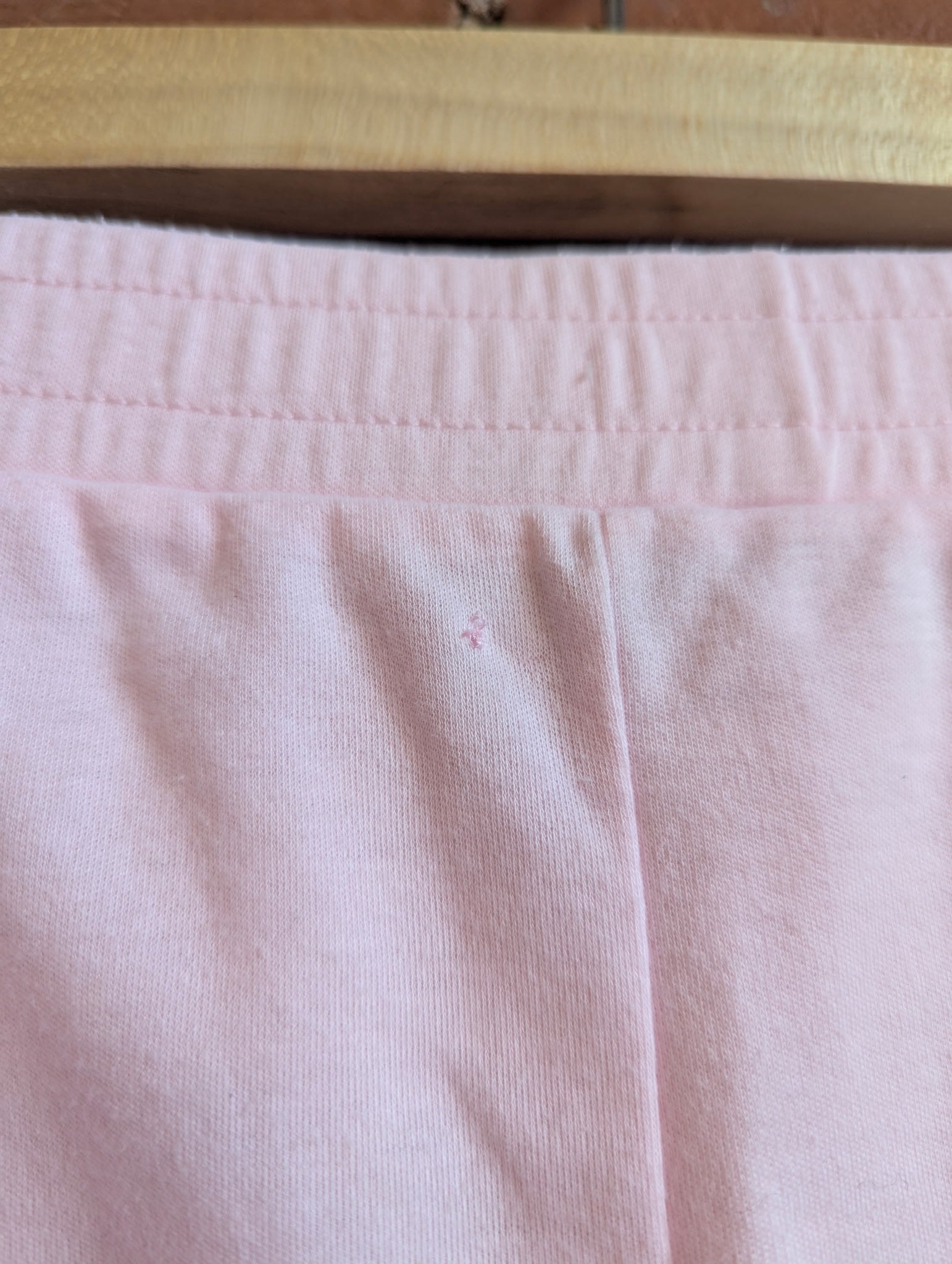 These 1980s Sentiments shorts are made out of a polyester and cotton blend in a baby pink colour and have an elastic waistband. As is: one small mend on front close to waistband.