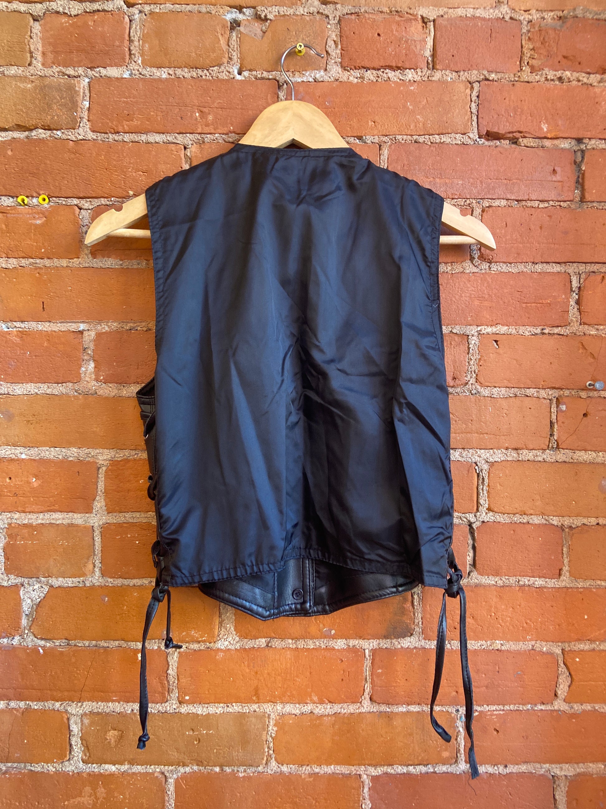 1990s Cosa Nova Black Vest With Pleather Front and Lace-Up Side Details