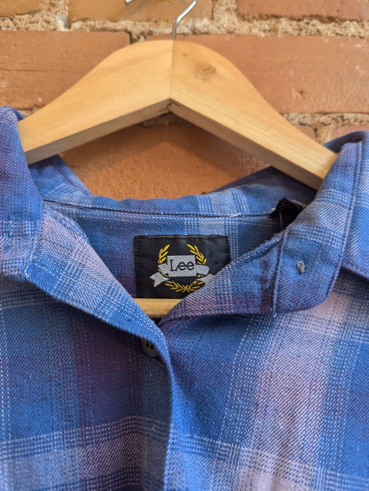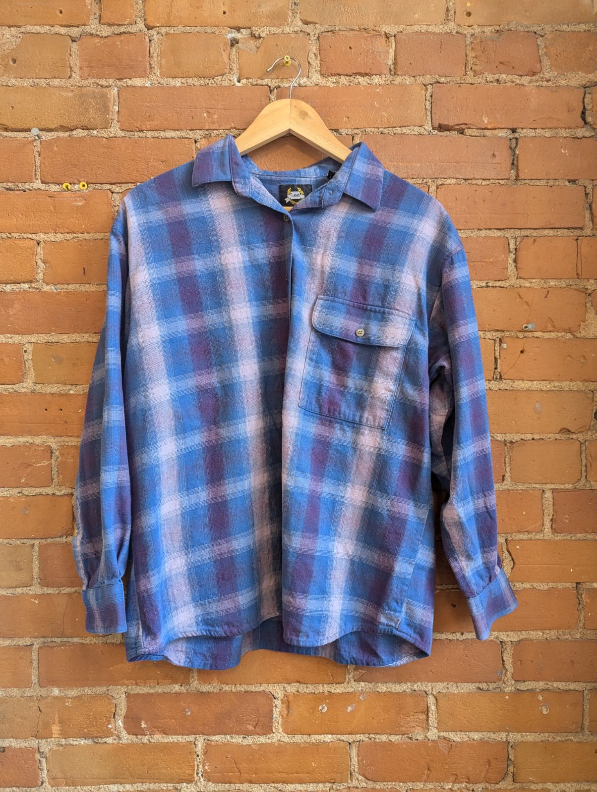 1990s Lee Purple and Blue Plaid Shirt