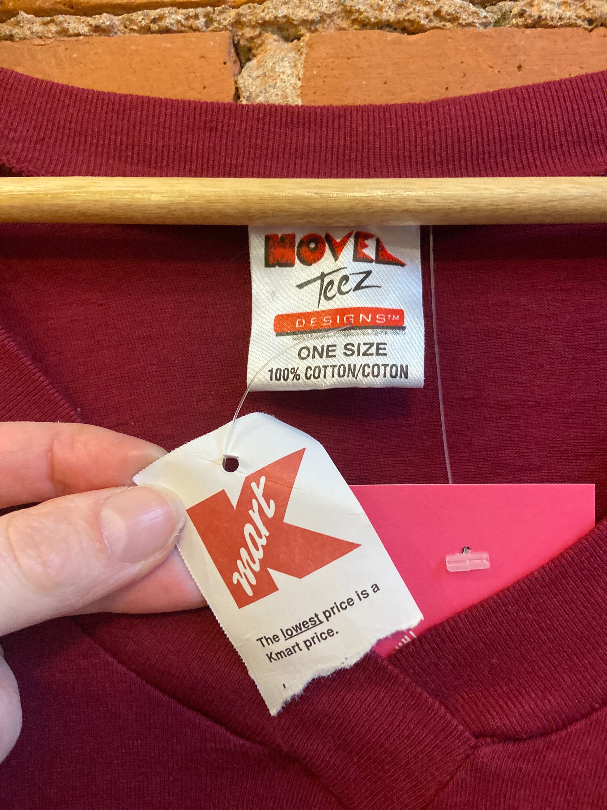 This 1990s NWT Novel Teez v-neck sleep shirt is made out of a 100% cotton fabric in a burgundy colour and has a Christmas themed Sesame Street graphic on the front.