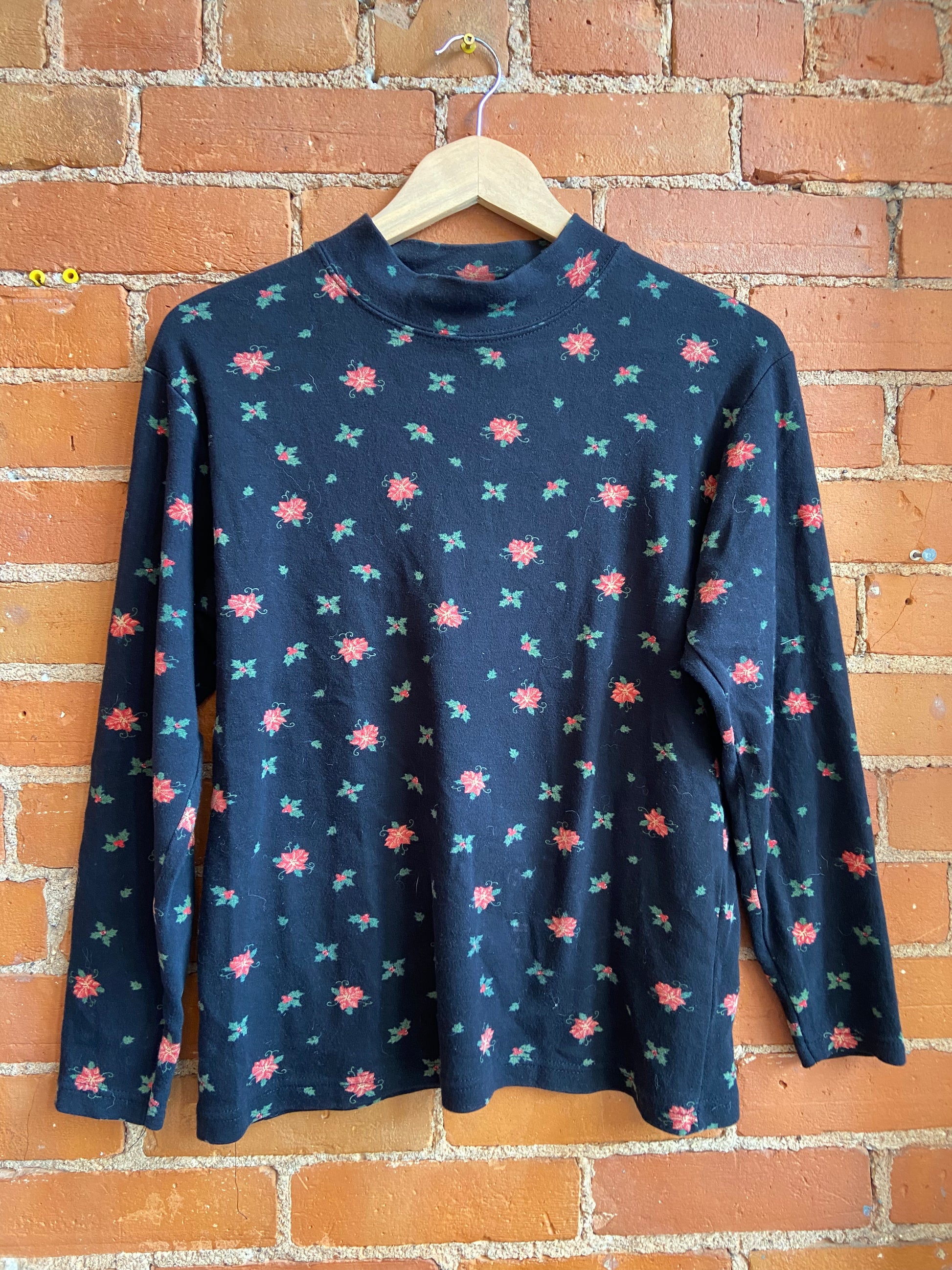 Black Mistletoe Mock Neck Top