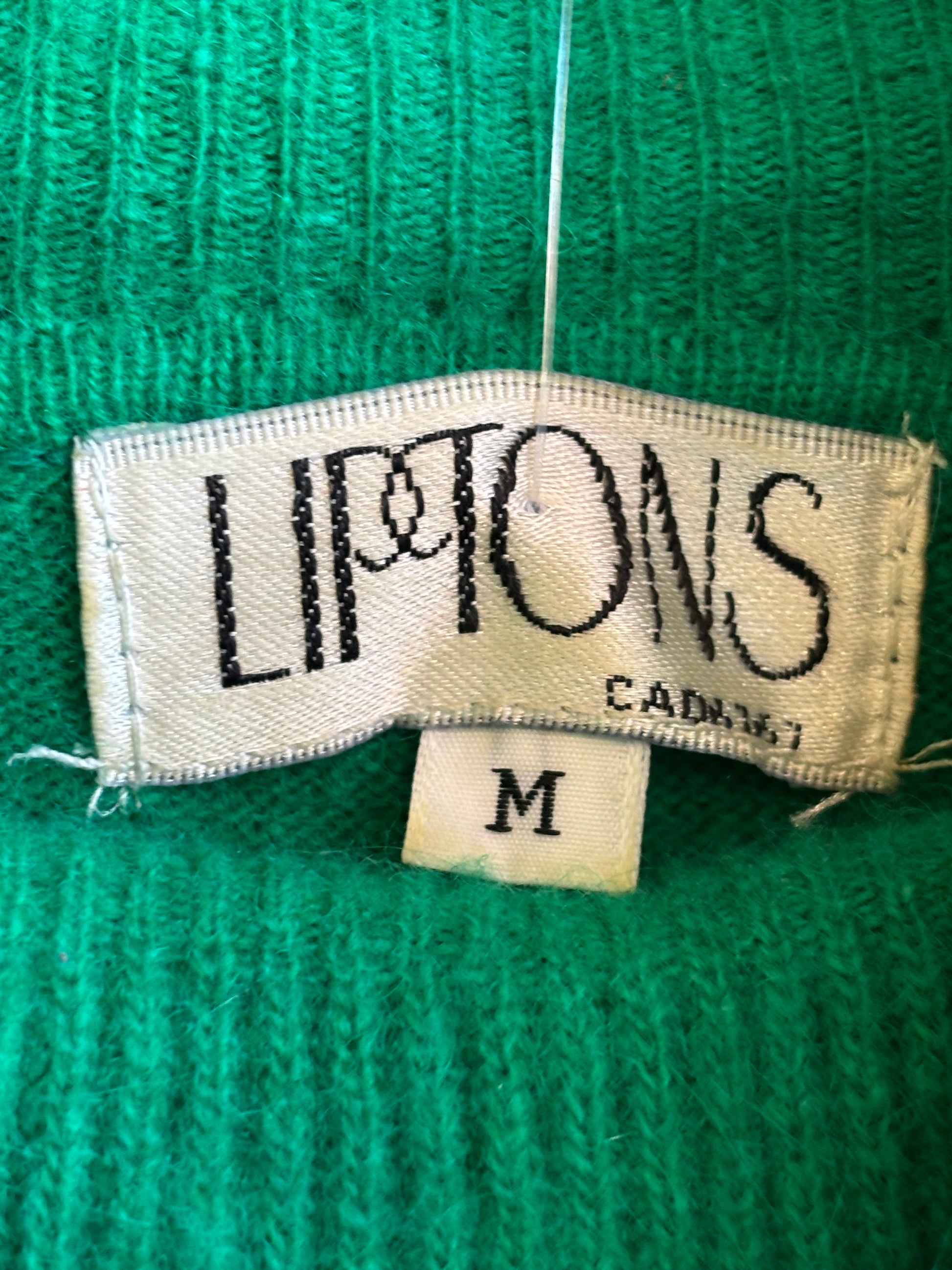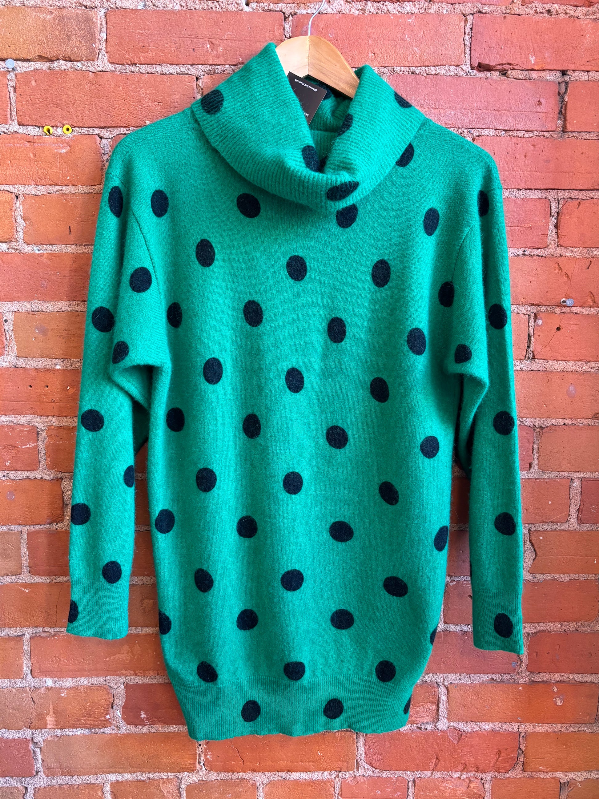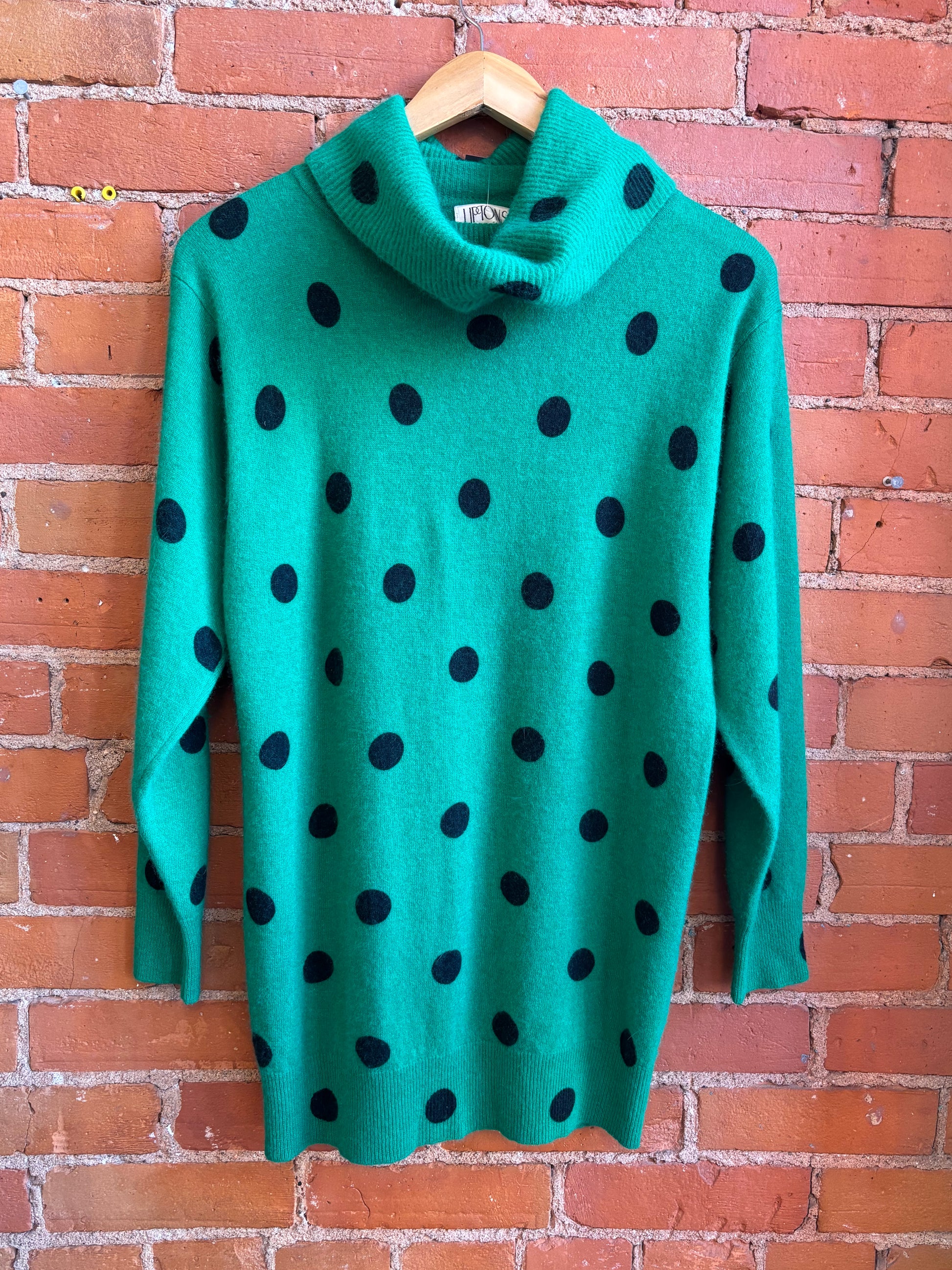 Super fun vintage '80s turtleneck sweater in green with black polka dots from Liptons.